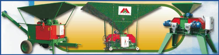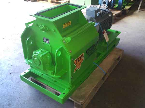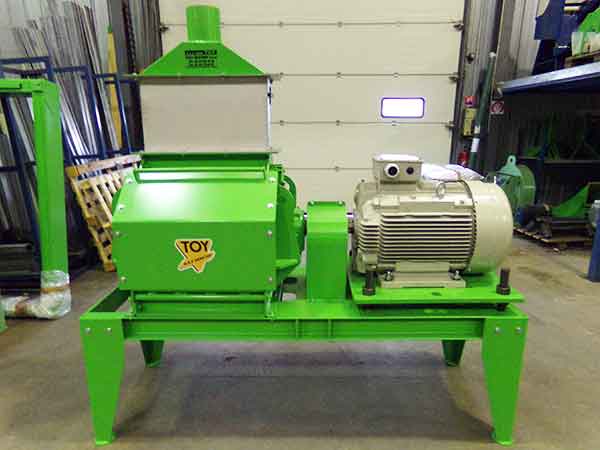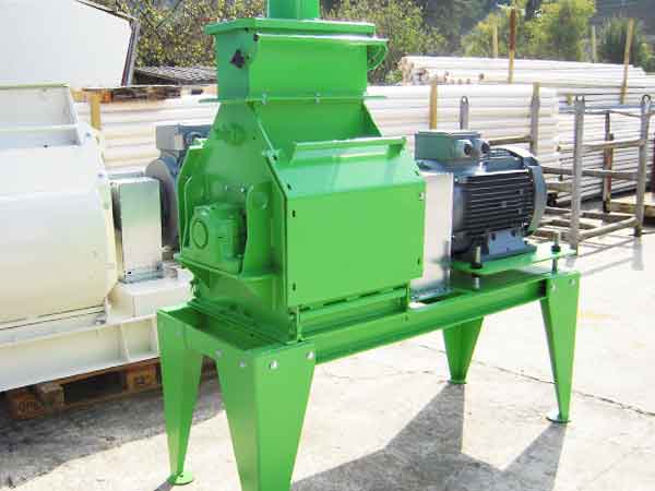 Machine pour le broyage court et la distribution de produits secs pour litière.