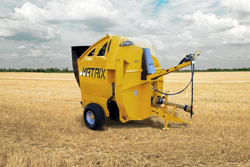 La machine est idéale pour le traitement de produits fibreux secs (paille, tiges de maïs, foin, etc.) conditionnés en balles rondes et prismatiques à répartir sur litière, en logette ou en mangeoire.