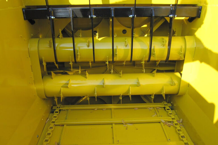 Machine pour le broyage court et la distribution de produits secs pour litière. La machine est idéale pour le broyage court et régulier de la paille en balles rondes et prismatiques. Le produit est chargé depuis la porte arrière et transporté à l’intérieur de la caisse jusqu’à un rotor équipé de couteaux et de 6 couteaux de 5 couteaux mobiles chacun.