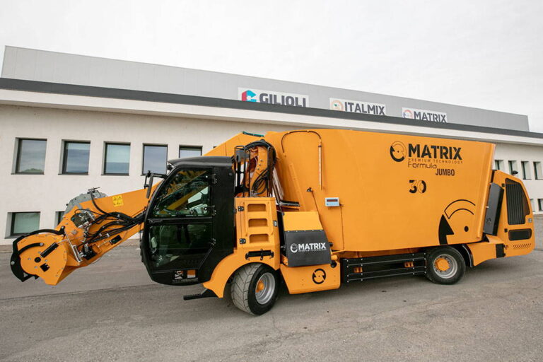 Les mélangeuses automotrices verticales de la série Matrix Formula sont disponibles en version à simple vis (Formula) et à double vis (Formula Jumbo). La série Formula a la transmission hydrostatique de la ou des vis, avec des pompes à pistons à cylindrée variable à haute pression et des moteurs pour le mouvement de la ou des vis, pour l’avancement et pour le désileur. Le moteur est positionné à l’arrière du wagon automoteur unifeed, de manière à être parfaitement accessible et avec une répartition équilibrée du poids. Construction robuste et précise, composants de haute qualité et surdimensionnés, grande expérience pour un chariot hacheur-malaxeur conçu pour les entreprises les plus exigeantes : mélange et coupe parfaits, rapidité, flexibilité et maniabilité sont les points forts d’une machine qui a fait et fera font l’histoire de notre entreprise et ont donné une grande satisfaction aux clients.
